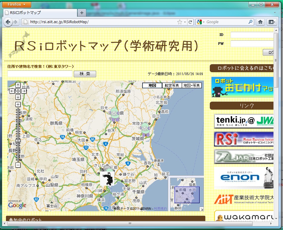 ノートPCをロボットとしてサーバに接続すると地図上にアイコンが表示されます.